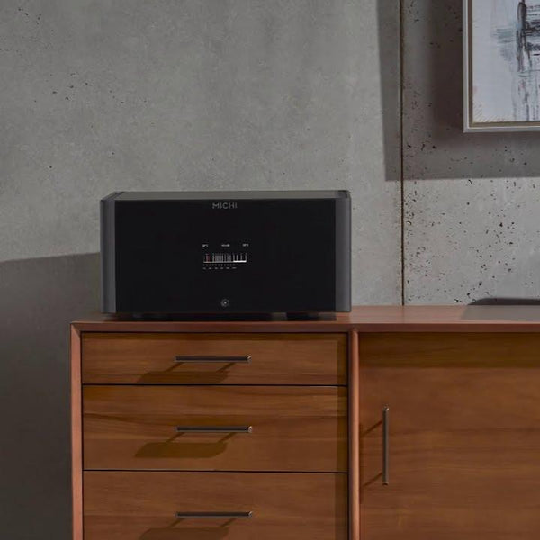 The Michi M8 monoblock amplifier is a no-compromise Class AB powerhouse, delivering 1,080 watts into 8 ohms and an incredible 1,800 watts into 4 ohms.